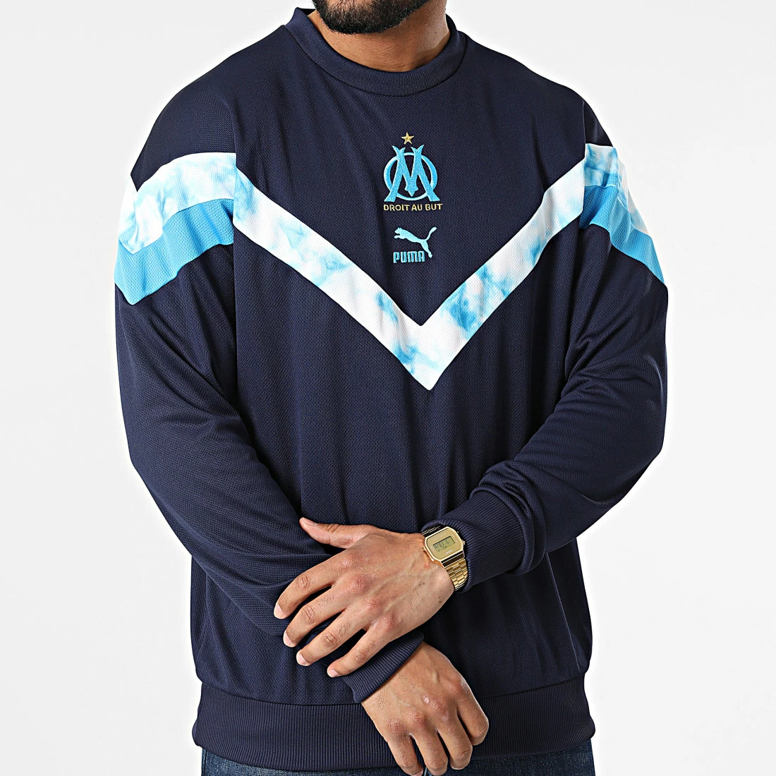 • Sweat crewneck brodé logos OM et Puma à l’avant