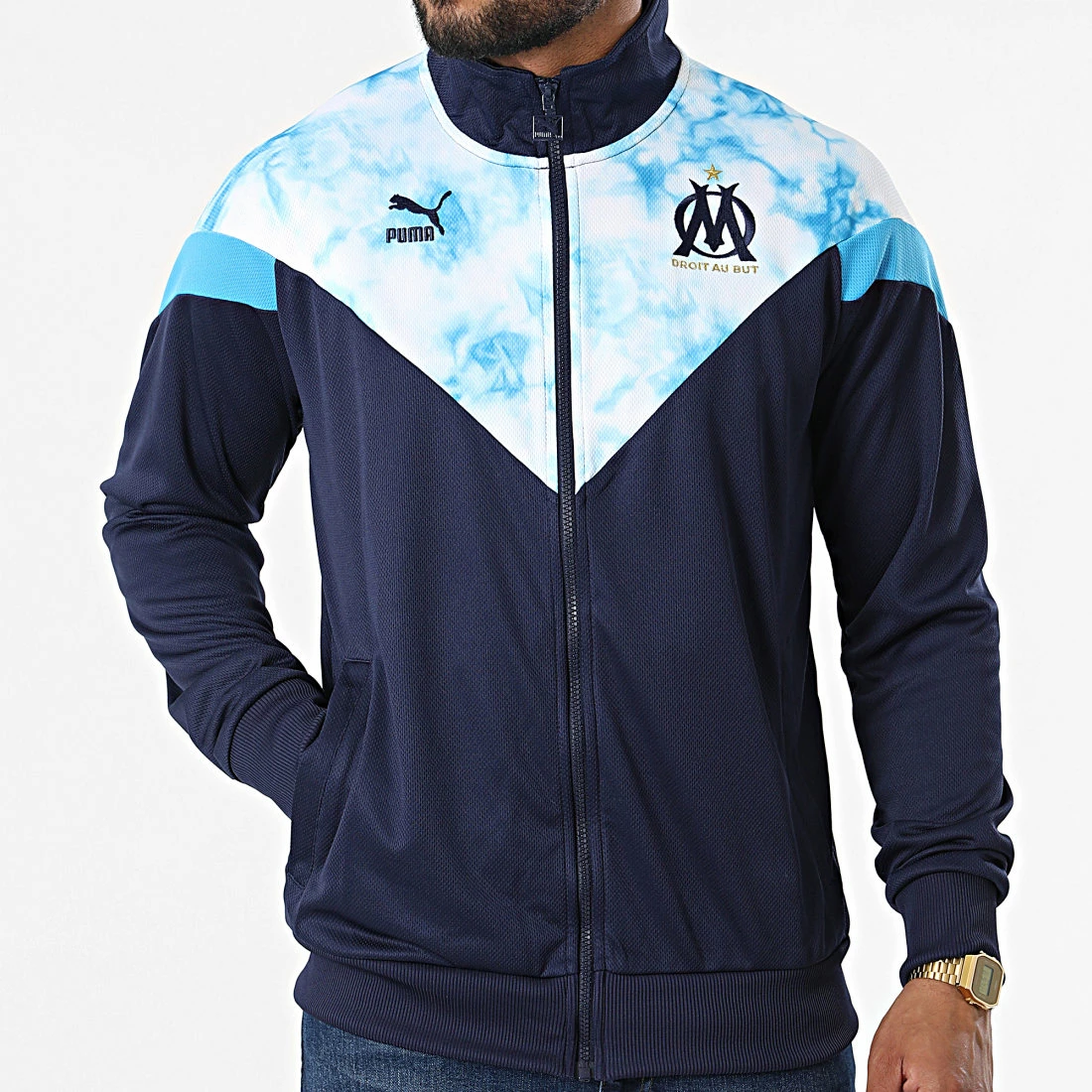 • Veste zippée tendance avec logo Olympique de Marseille brodé